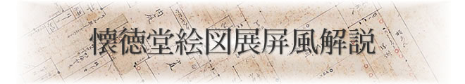 ここには、創立時以来の懐徳堂の絵図・平面図が多数貼り付けられているが、この屏風が作成された経緯については、中井木菟麻呂「懐徳堂遺物寄進の記」(『懐徳』第11号、1933年)に記されている。それによれば、他家に寄託してあった資料の中に、木菟麻呂も初めて見る貴重な資料があり、この中の懐徳堂学舎に関わる絵図類と中井家所蔵の関係資料とを併せて、この展覧会用に屏風に仕立てたというのである。